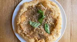 lightly fried pizza dough topped with cream of pork onions, parmigiano reggiano and finished in wood-fired oven