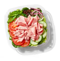 The Cold Cut Combo salad has ham, salami, and bologna (all turkey-based) tossed together with crisp lettuce and your favorite veggies. Mix it up with whatever dressing you love best.