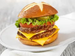 Double Bacon Cheese Burger on a Roll
